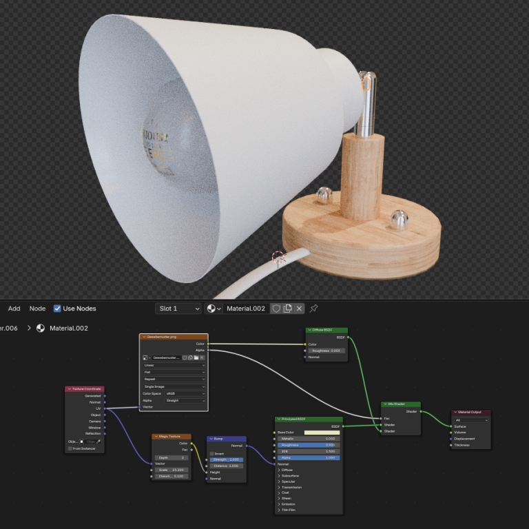 Auf dieser Seite zeige ich am Beispiel einer relativ einfachen aufgebauten Wandlampe, wie sich der Arbeitsablauf gestaltet, um aus den verfügbaren Vorlagen anschauliche Bilder und ein Video zu kreieren.
